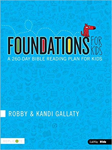 “Foundations for Kids: A 260 Day Bible Reading Plan for Kids” – by Robby & Kandi Gallaty; also has activities.